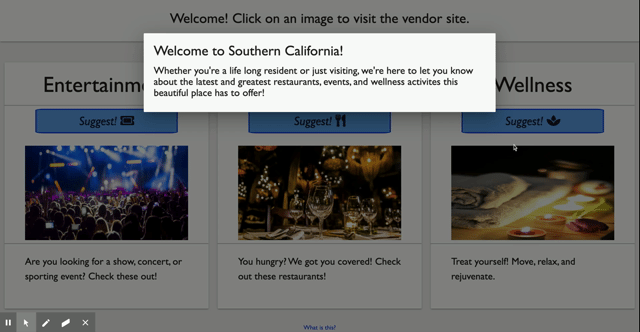 A clean webpage that generates random activity and eatery suggestions located in the Southern California area.